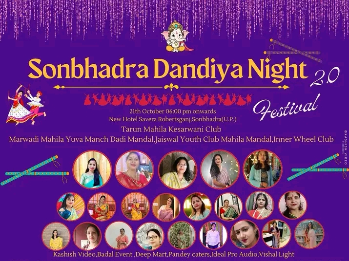 इस दौरान तरुण महिला केसरवानी क्लब की जिलाध्यक्ष श्वेता केशरी और मारवाड़ी सोन महिला मंच की जिलाध्यक्ष प्रतिभा कनोडिया ने संयुक्त रूप से बताया कि डांडिया नाइट का भव्य कार्यक्रम जिला मुख्यालय रॉबर्ट्सगंज के सिविल लाइन रोड पर स्थित होटल सवेरा के कंपाउंड में आयोजित किया जा रहा है।