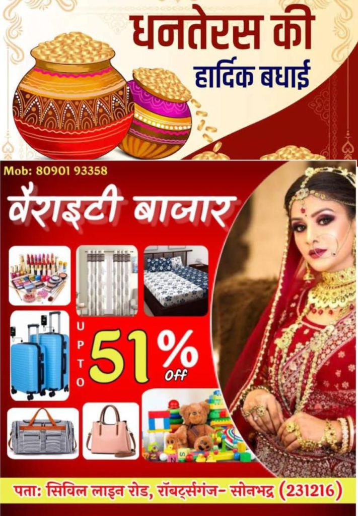 मंगलवार को कार्तिक कृष्ण पक्ष धनतेरस के दिन युवा अधिकार मंच जिलाध्यक्ष सोनभद्र विनीत तिवारी अपने सहयोगियों एवं सफाई कर्मचारियों को लेकर साफ सफाई किए। जिलाध्यक्ष द्वारा बताया गया कि धर्मस्थल शिवद्वार जनपद सोनभद्र का लोकप्रिय धर्मस्थल है