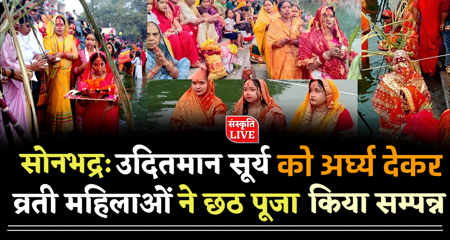 सोनभद्र। हे सुरुज देव पूरा कर द अरजिया हमार. की विनती के साथ लोक आस्था का चार दिनी महापर्व छठ का शुक्रवार को उगते सूर्य को अर्घ्य देने के साथ संपन्न हुआ।