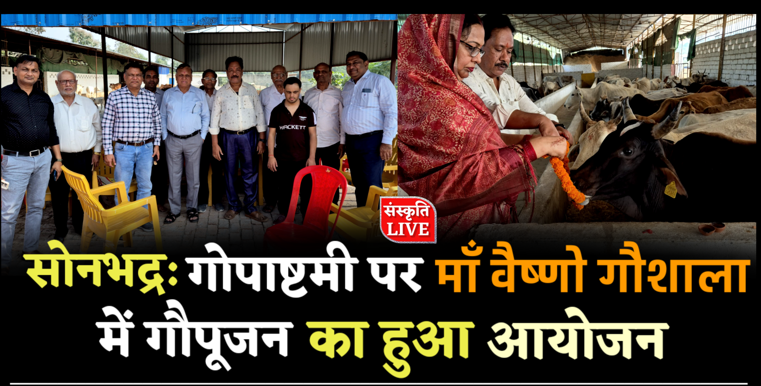 डाला, सोनभद्र। गोपाष्टमी के उपलक्ष्य में शनिवार को मां वैष्णो देवी शक्तिपीठ धाम डाला के पास स्थित माँ वैष्णो गौशाला में गौपूजन कार्यक्रम का आयोजन किया गया। जिसमें गौ माता का विधि विधान से पूजन कर चारा एवं फल खिलाया गया।