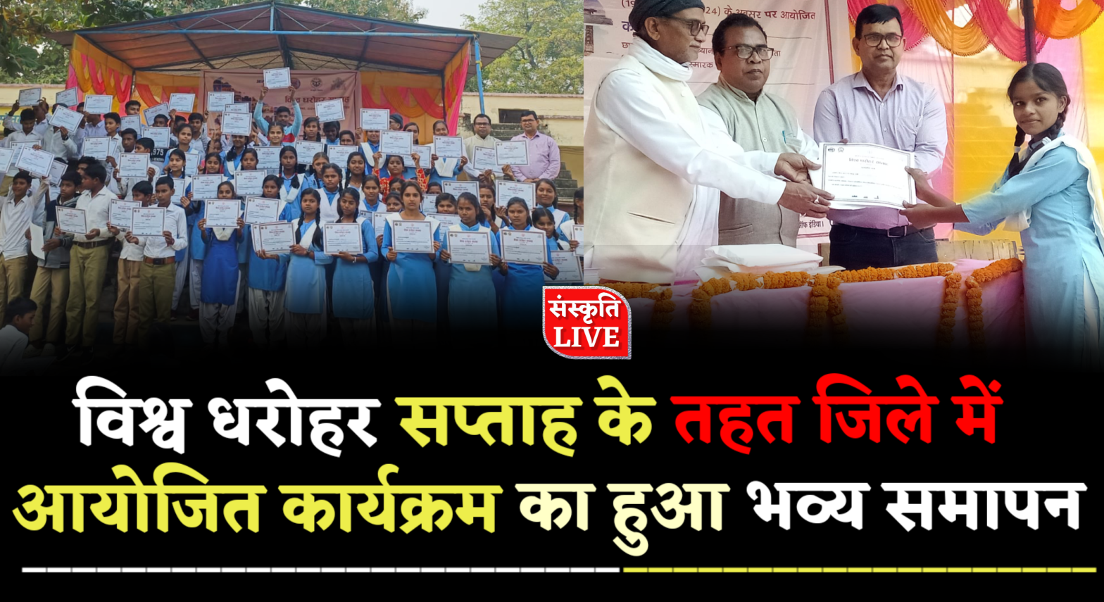 इसके बाद छात्रों की टीम विद्यालय पहुंची जहां पर जिले के सांस्कृतिक, पुरातात्विक धरोहर विषयक आयोजित चित्रकला एवं क्विज प्रतियोगिता के विजई प्रतिभागी छात्रों को अतिथियों द्वारा सम्मानित किया गया।