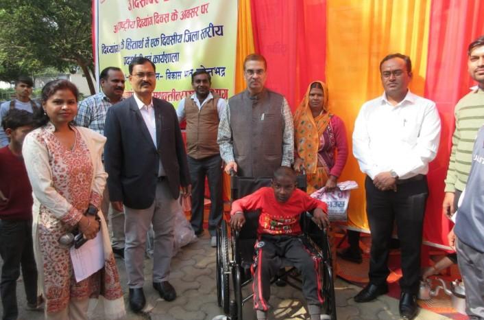 विश्व दिव्यांग दिवस के शुभ अवसर पर विकास भवन परिसर में कृत्रिम अंग व सहायक उपकरण का वितरण जिलाधिकारी द्वारा किया गया। इस कार्यक्रम का शुभारम्भ दीप प्रज्ज्वलन कर किया, कार्यक्रम के दौरान जिलाधिकारी बद्रीनाथ सिंह के द्वारा 10 दिव्यांगजनों में सहायक उपकरण का वितरण किया गया।