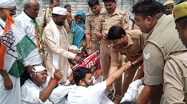 There was a heated argument between the police and the Congress workers and they expressed their protest