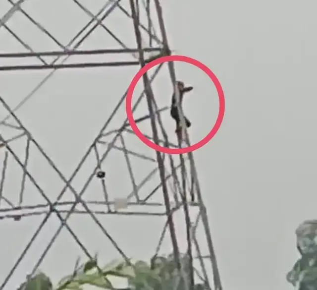 Husband got angry with his wife and climbed the electricity tower, after counselling he got her back