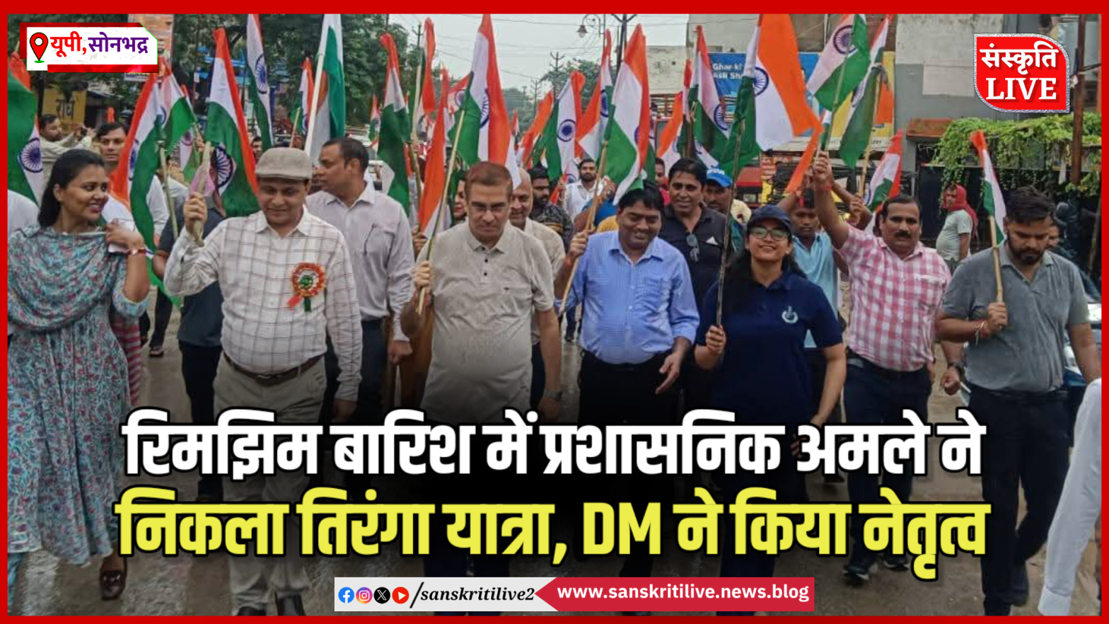 रिमझिम बारिश में प्रशासनिक अमले ने निकला तिरंगा यात्रा, DM ने किया नेतृत्व