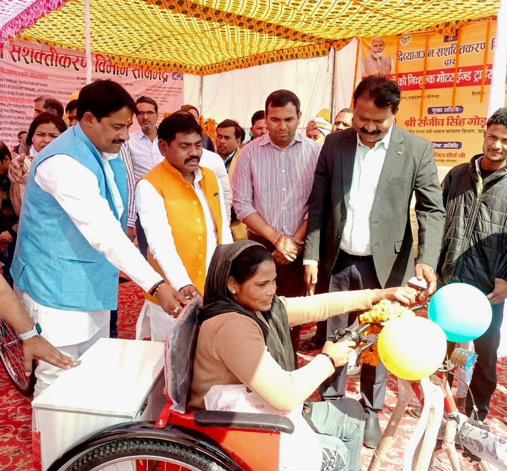 दिव्यांगो में निःशुल्क मोटराईज्ड ट्राई साईकिल का किया गया वितरण