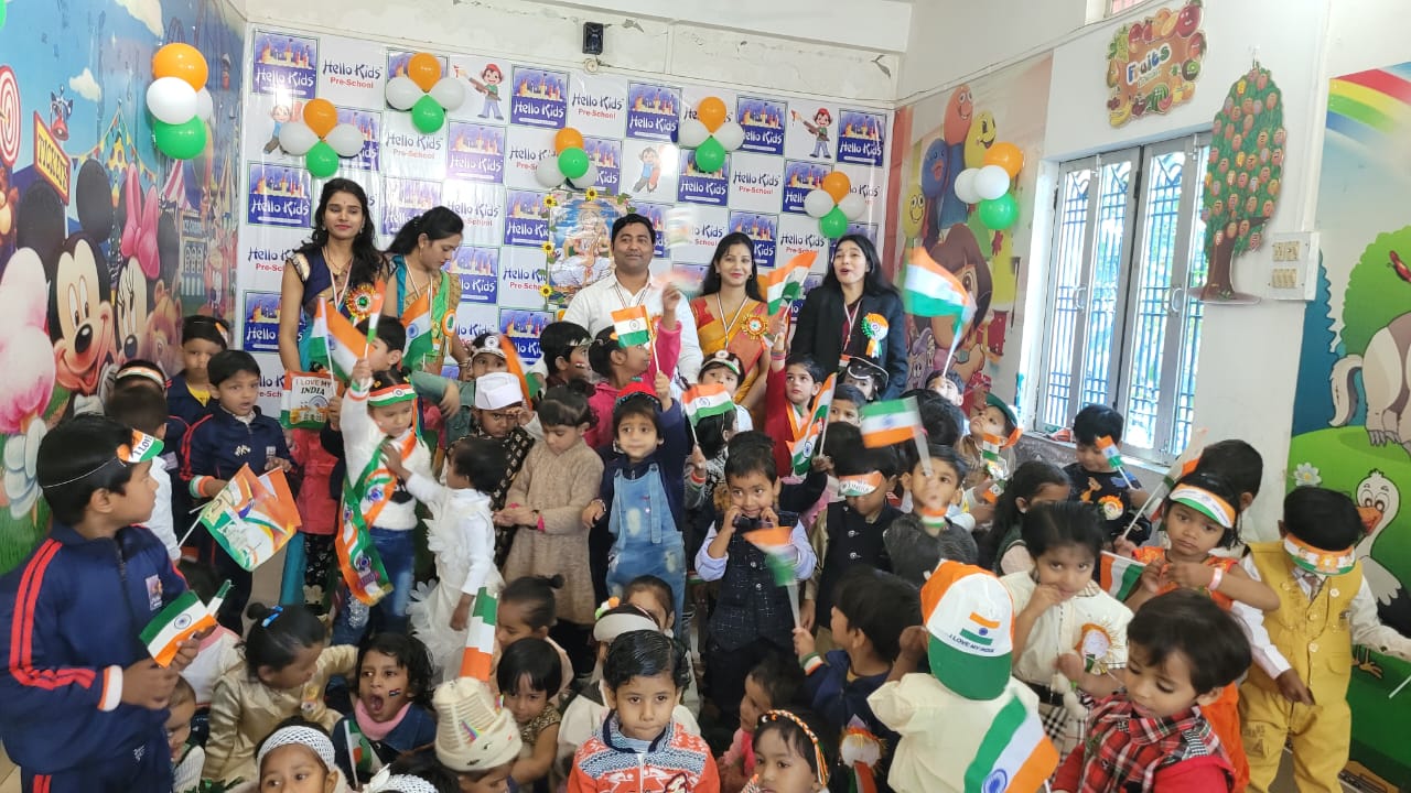 हेलो किड्स प्ले स्कूल में मनाया गया 74 वां गणतंत्र दिवस