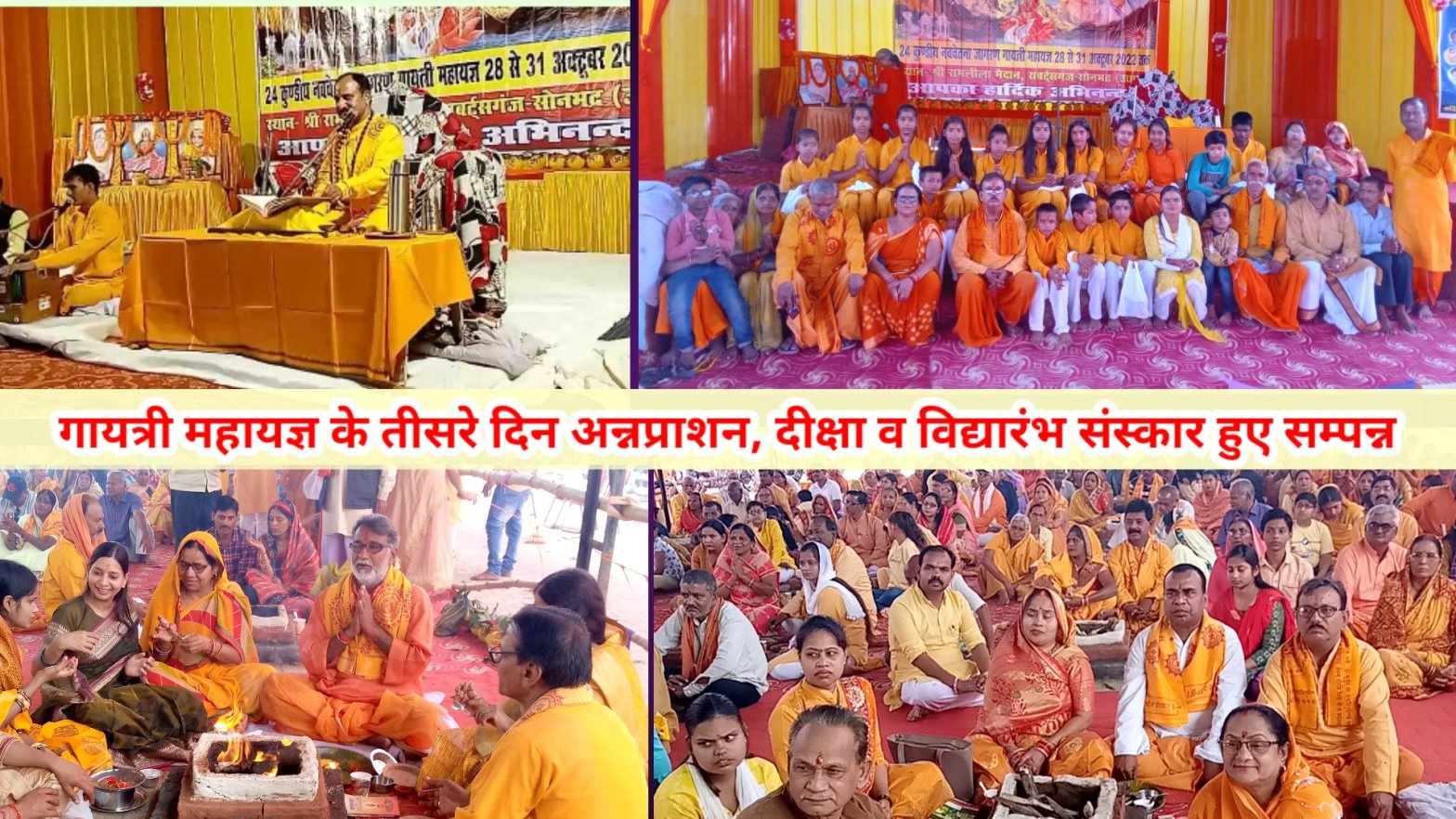24 कुंडीय गायत्री महायज्ञ के तीसरे दिन अन्नप्राशन, दीक्षा व विद्यारंभ संस्कार हुए सम्पन्न
