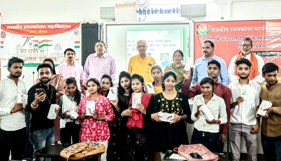 राजकीय पीजी कालेज ओबरा के छात्र -छात्राओं में नि:शुल्क स्मार्टफोन का हुआ वितरण