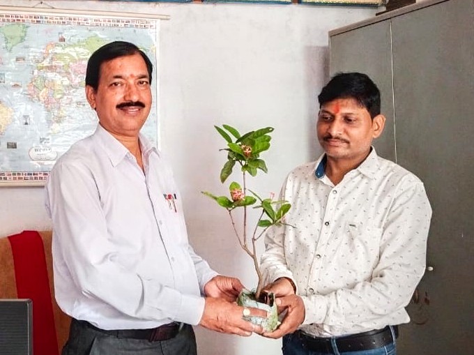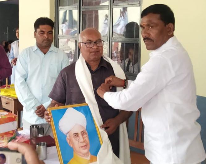 शिक्षकों को पौधा भेंट कर किया गया सम्मानित