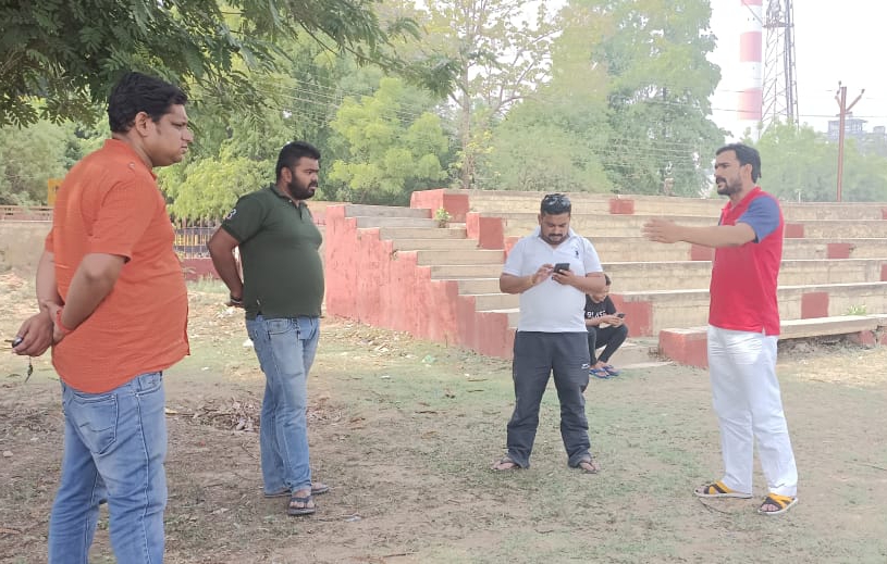 भाजयुमो के प्रदेश अध्यक्ष के आगमन को लेकर कार्यकर्ताओं ने कार्यक्रम स्थल का किया निरीक्षण