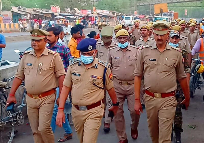 Flag march was carried out in Dala Nagar under the leadership of Superintendent of Police.