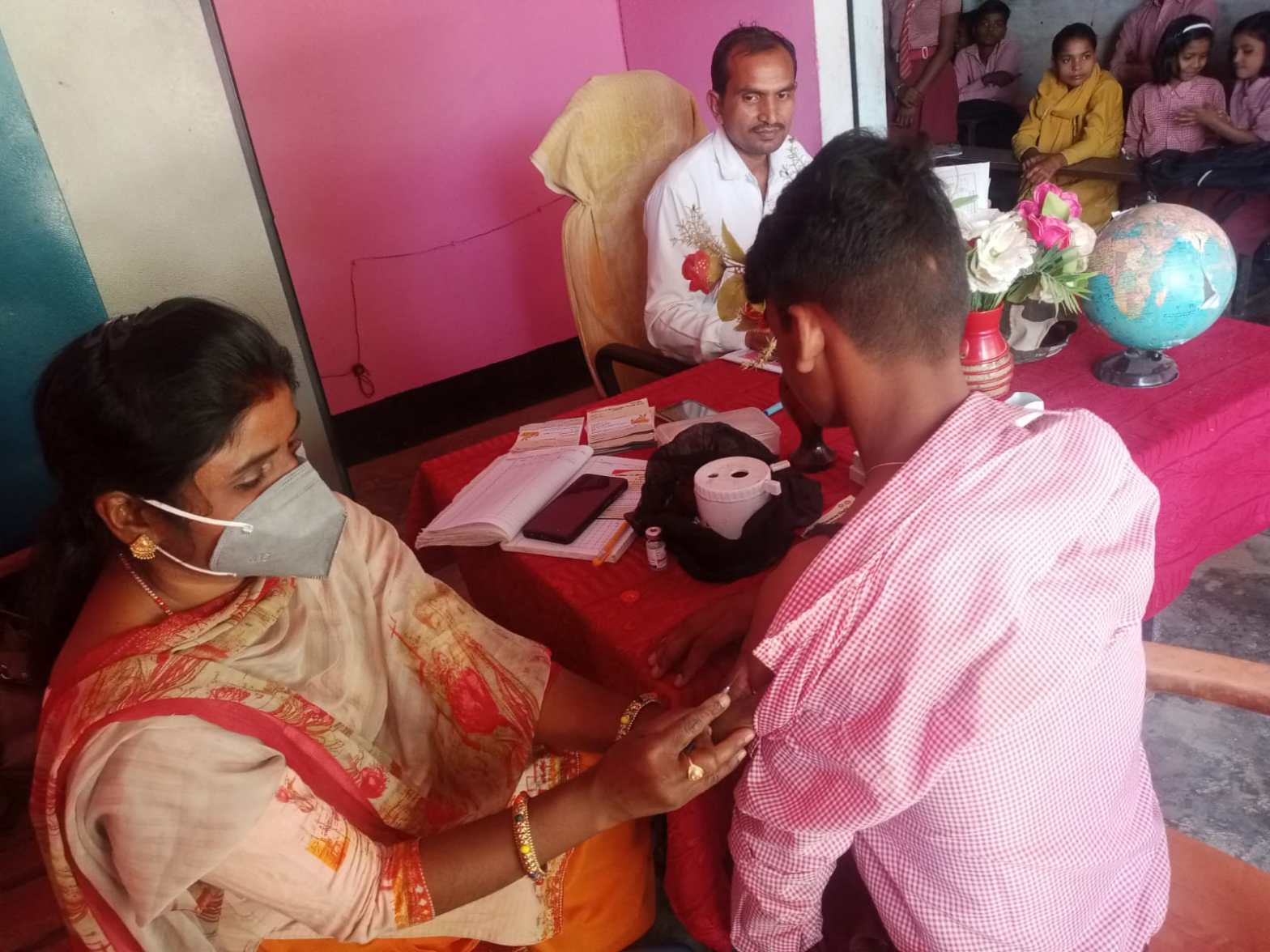 Kovid-19 vaccines were administered to school children from 12 years to 14 years at Shiva Academy Sukrit Vidyalaya.