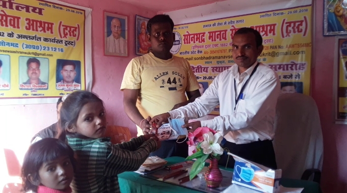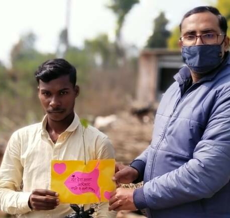 Gautam Vishwakarma distributed textbooks and masks among children on his 38th birthday.