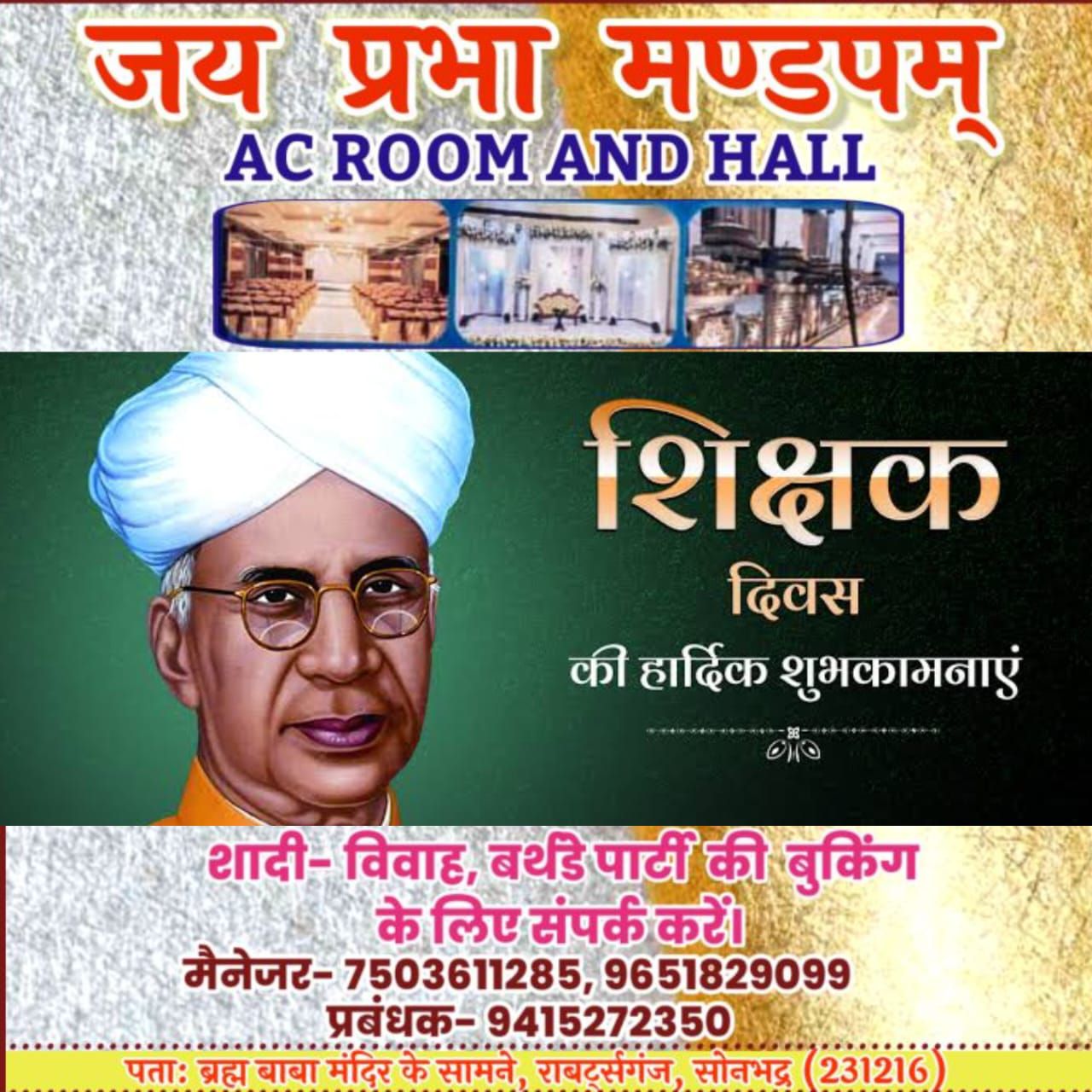 इस अवसर पर पूर्व राज्यसभा सांसद श्री रामसकल जी ने कहा कि डाॅ0 सर्वपल्ली राधा कृष्णन जब तक वाईस चांसलर रहेे, उन्हें कभी भी वेतन अपना नहीं लिया और निरन्तर शिक्षा व्यवस्था को बेहतर करने का कार्य करते रहें, आज जनपद सोनभद्र की शिक्षा व्यवस्था में बेहतर सुधार आया है