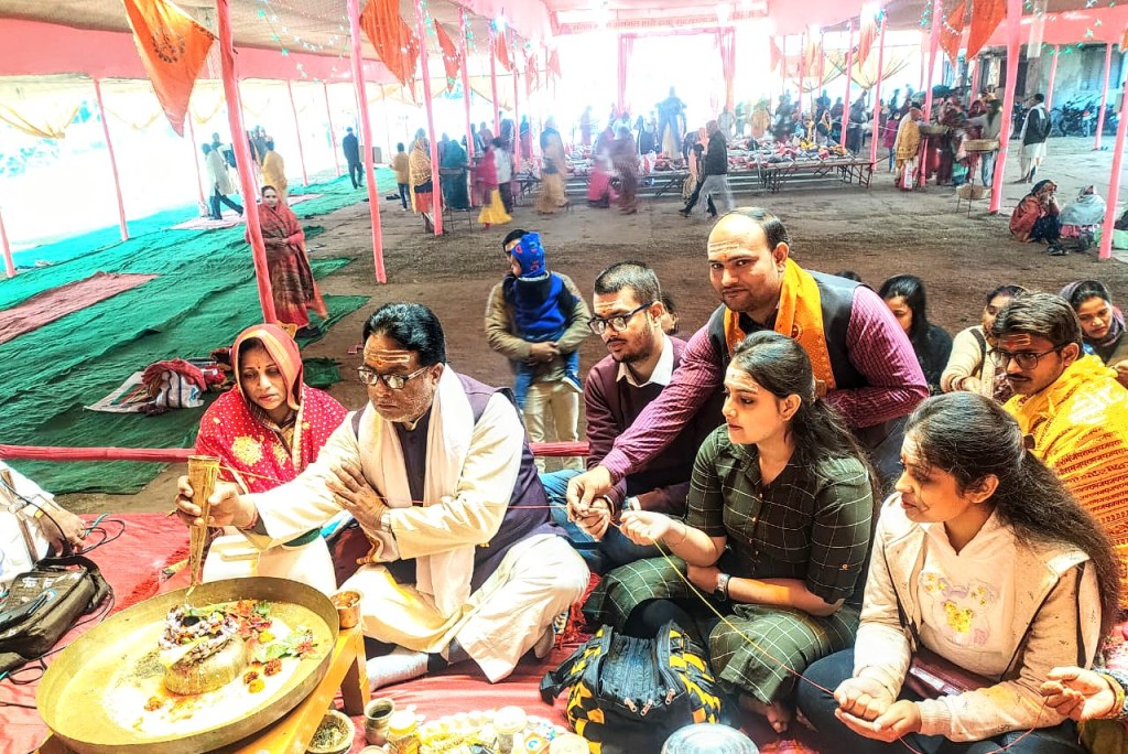 मानस मंच पर यजमान अजय शुक्ला पत्नी माधुरी शुक्ला संघ रुद्राभिषेक करते हुए