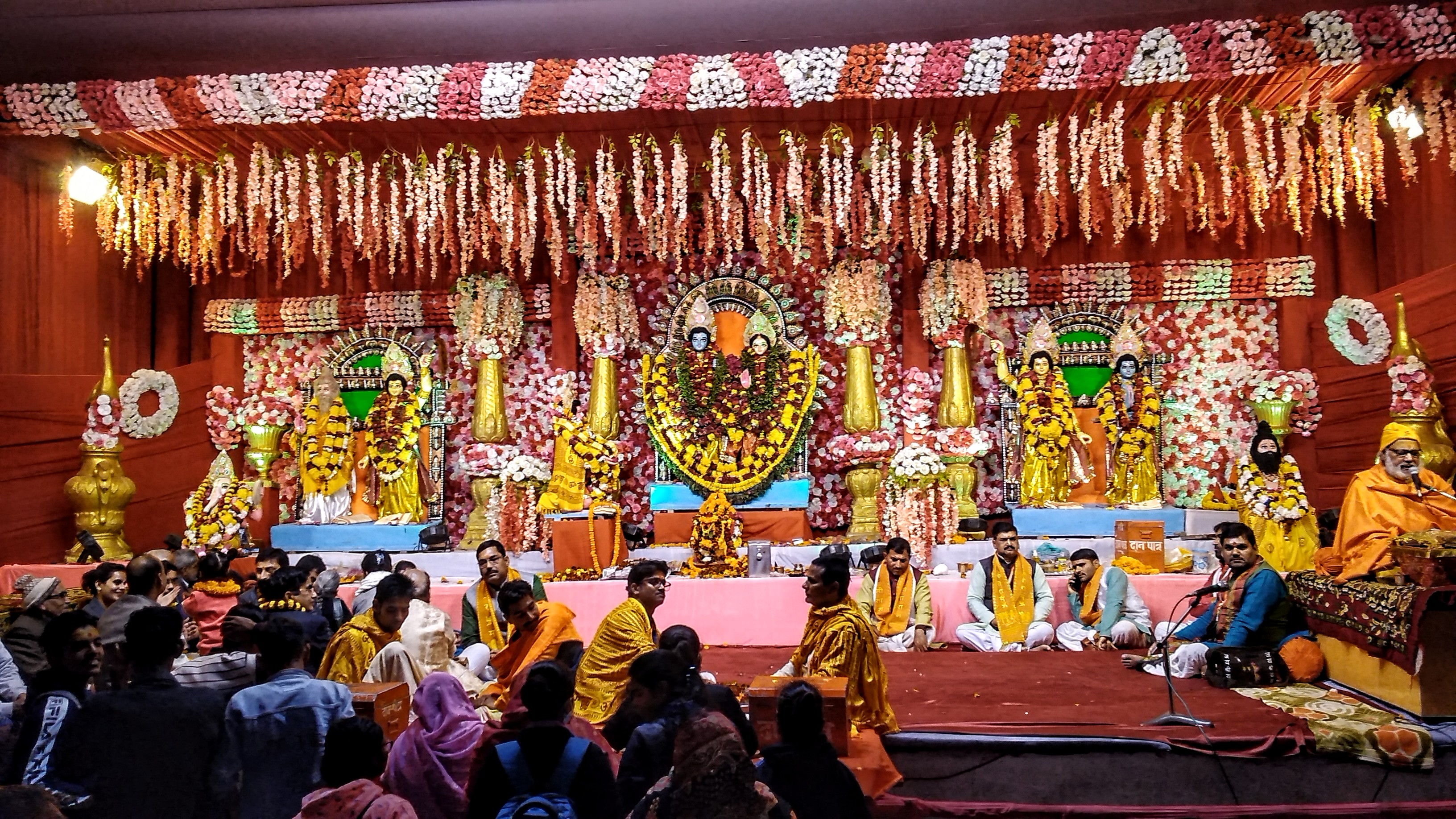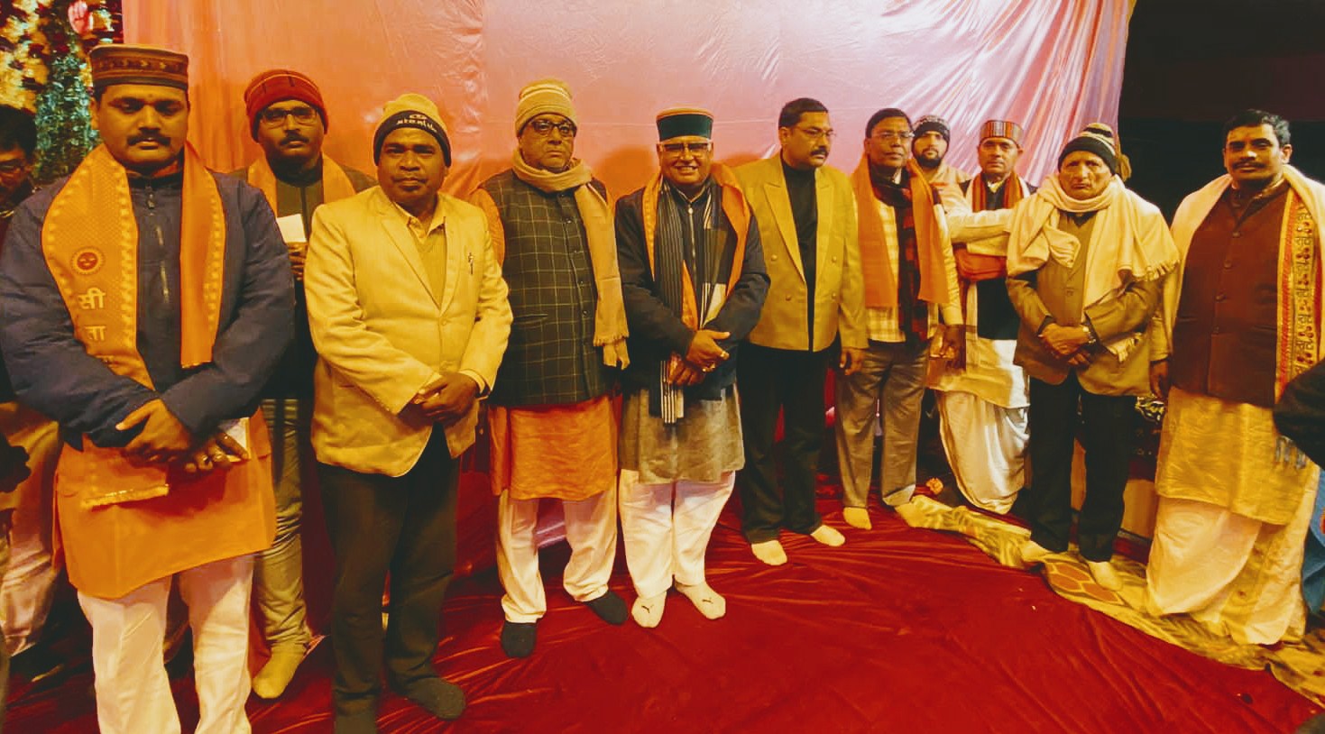 रात्रि प्रवचन में मानस मंच पर उपस्थित समिति के पदाधिकारी गण, सदस्य गण एवं अतिथि