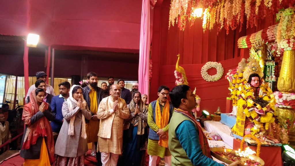 कार्यक्रम का शुभारम्भ डॉ० नीलकण्ठ तिवारी राज्य मंत्री (स्वतंत्र प्रभार) संस्कृति, पर्यटन, धर्मार्थ कार्य एवं प्रोटोकॉल, विद्यासागर राय, महानगर अध्यक्ष, भारतीय जनता पार्टी, प्रो० सुरेश शर्मा, दनिदेशक, उ म क्षे सांस्कृतिक केंद्र, डॉ गौरी बासु, निदेशक, पूर्वी क्षेत्र सांस्कृतिक केन्द्र ने दीप प्रज्ज्वलित कर किया। लगभग 35 मिनट तक शंखनाद का आयोजन किया गया। शंखवादक पुरुष, महिलाएं, बच्चे सभीे पारम्परिक वेशभूषा में थे।