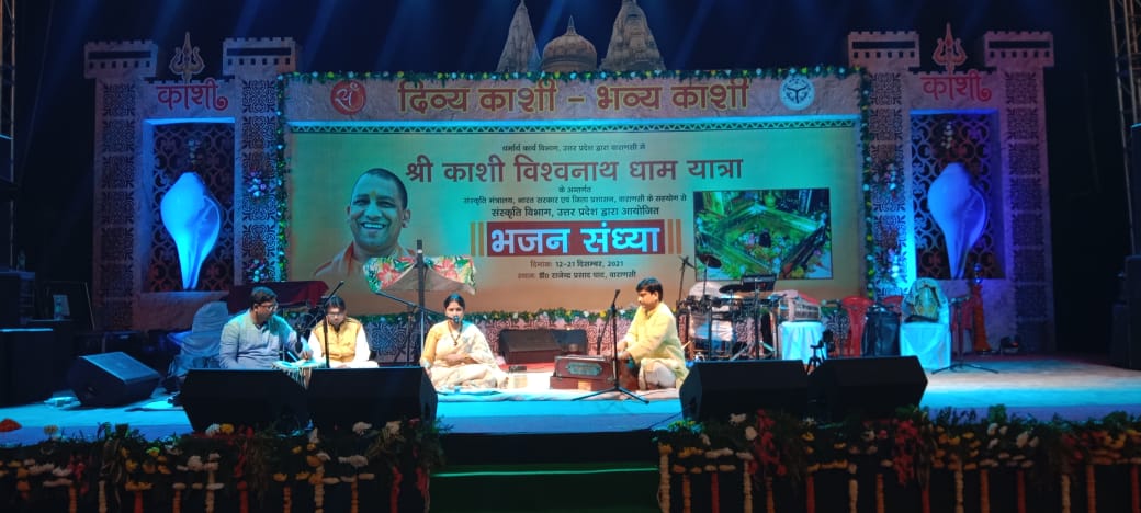 वाराणसी। श्री काशी विश्वनाथ धाम यात्रा के अंतर्गत संस्कृति विभाग उत्तर प्रदेश द्वारा संस्कृति मंत्रालय भारत सरकार एवं धर्मार्थ कार्य विभाग उत्तर प्रदेश के सहयोग से राजेंद्र प्रसाद घाट पर भजन संध्या का आयोजन 12 दिसंबर से 21 दिसंबर तक आयोजित किया जा रहा है। इसी क्रम में भजन संध्या के प्रथम दिन गायक पंडित सुखदेव मिश्रा द्वारा सुंदर प्रस्तुति की गई। इनके साथ वायलिन पर, पं. अंशुमान महाराज सरोद पर, श्रुतिशिल उध्दव तबला पर, विनोय मुखर्जी डर्म पर, निपेद्र कुमार गिटार पर रहे।