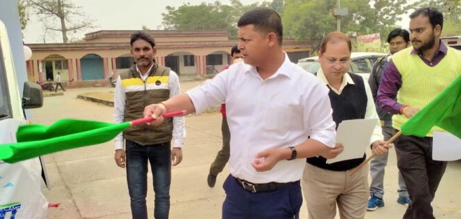 सोनभद्र। बृहस्पतिवार को कलेक्ट्रेट परिसर में जिलाधिकारी टी०के० शिबू द्वारा रबी वर्ष 2021-22 के लिए प्रधानमंत्री फसल बीमा योजना के अंतर्गत किसान जागरुकता रथ को हरी झंडी दिखाकर रवाना किया गया।