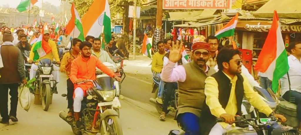 ओबरा, सोनभद्र। रविवार को अमृत महोत्सव समिति ओबरा द्वारा नगर में तिरंगा ध्वज के साथ सैकड़ों राष्ट्र प्रेमियों द्वारा एक भव्य तिरंगा यात्रा दोपहिया वाहन से निकाला गया। यात्रा आकाशवाणी मैदान से प्रारंभ हुआ और आर्य समाज, सुभाष तिराहा, शारदा मंदिर, बिल्ली गांव ,क्लब नंबर 4 स्टेडियम मार्ग, क्लब नंबर-1 से होते हुए गांधी मैदान कार्यक्रम के अतिथियों द्वारा भारत माता की आरती के साथ संपन्न हुआ। तिरंगा यात्रा के दौरान भारत माता की जय व वंदे मातरम के गगन भेदी जय उद्घोष से पूरा वातावरण राष्ट्रभक्ति मय हो गया। वही नगर में यात्रा के दौरान नगर वासियो व व्यवसायियो द्वारा जगह जगह पुष्प वर्षा से स्वागत किया गया।