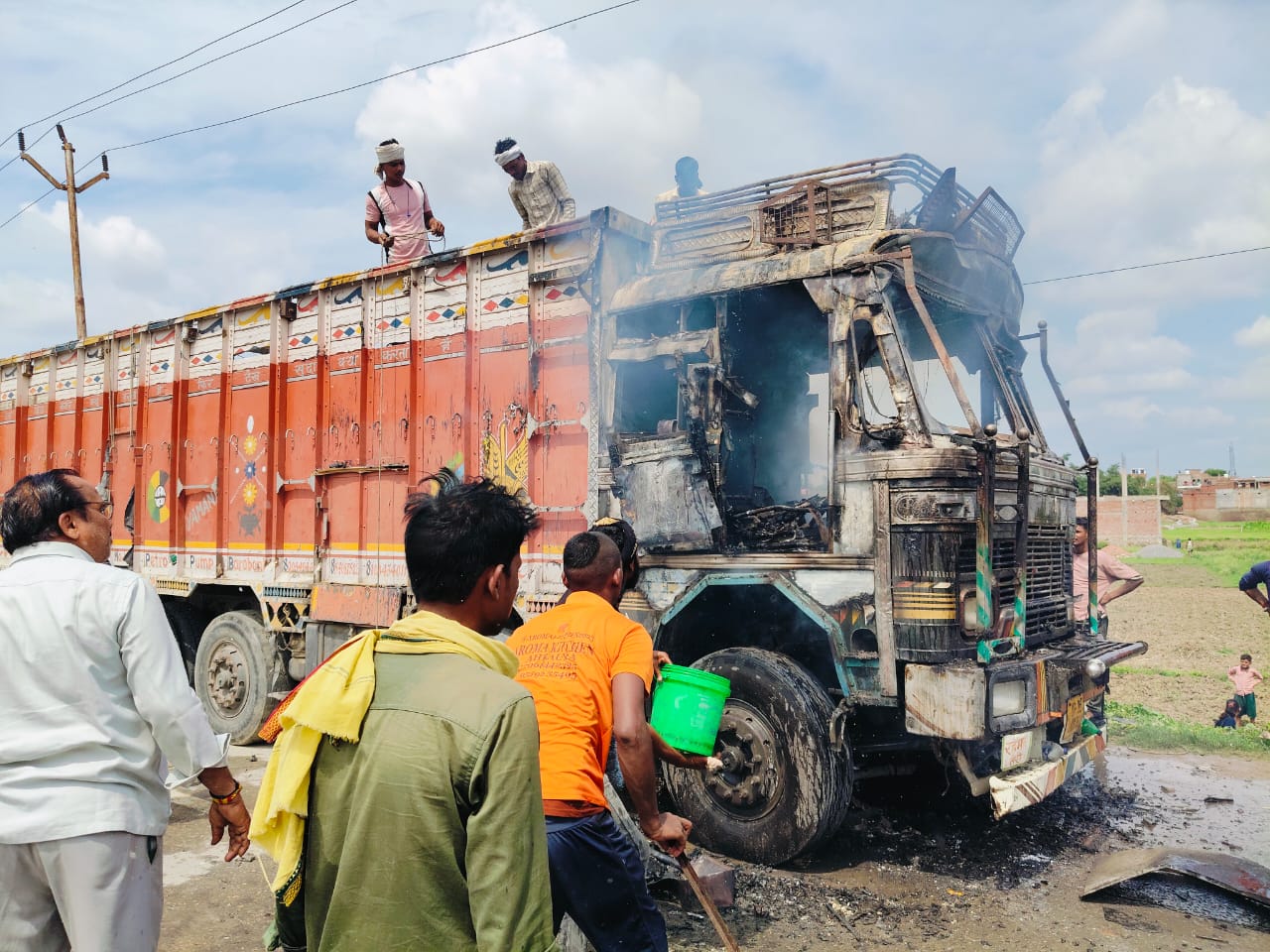 शॉट सर्किट से खाद लदी खड़ी ट्रक में लगी आग, केविन हुआ खाक