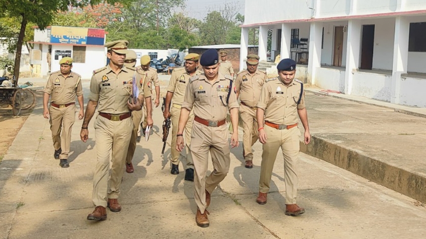 ASP along with PAC force conducted a flag march in Robertsganj town