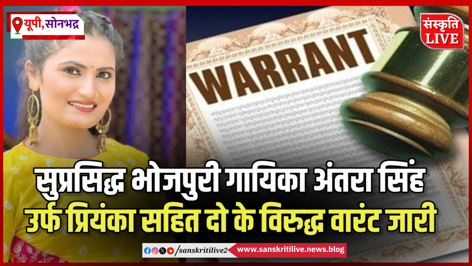 सुप्रसिद्ध भोजपुरी गायिका अंतरा सिंह सहित दो के विरुद्ध वारंट जारी